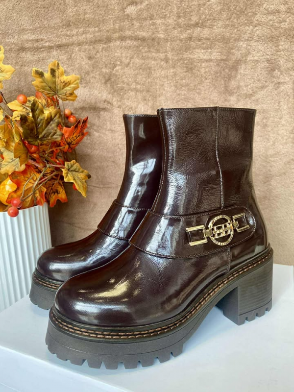 Lux By Dessi 790 magassarkú csizma lakk csokoládé