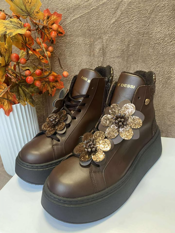 Lux By Dessi Astra-16/Liana bokacsizma csokoládé virágos