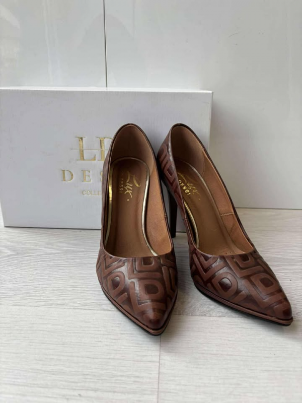 Lux By Dessi P-9103-P magassarkú cipő barna/dombor LD
