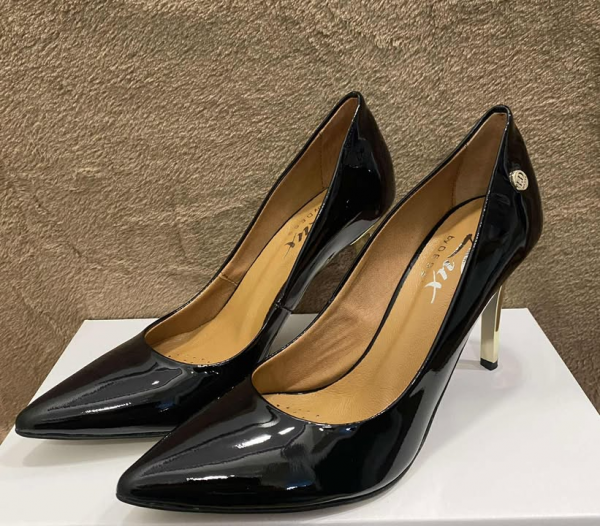 Lux By Dessi 956 magassarkú cipő fekete lakk arany sarok