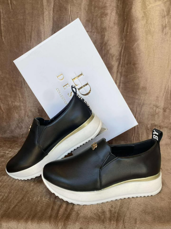 Lux By Dessi 966/SL slipon fekete fehér talppal arany csík